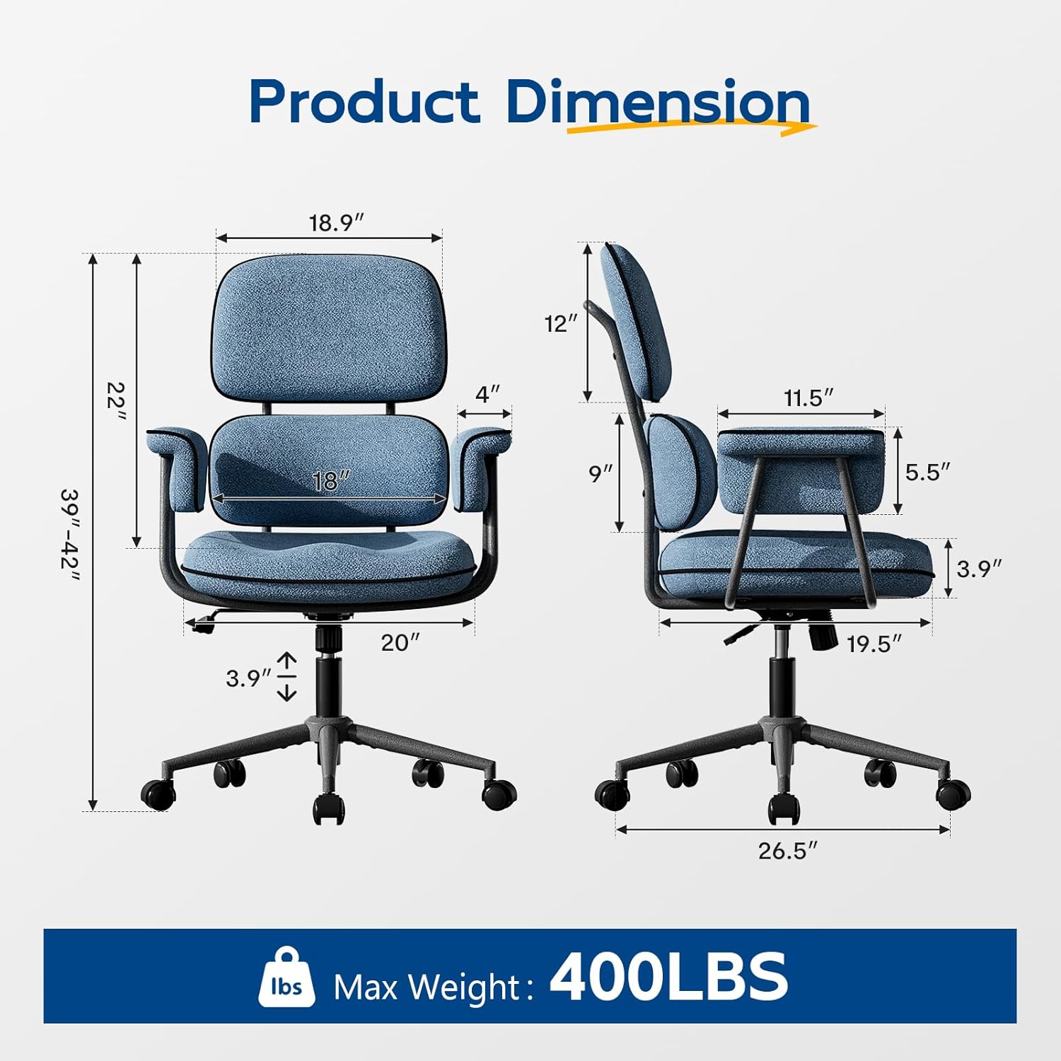 - Sturdy Metal Frame with 400LBS Weight Capacity: Our Comfy desk chair features a robust frame constructed from high-quality materials, engineered to support up to 400 pounds, ensuring lasting durability and reliable stability for your daily work needs