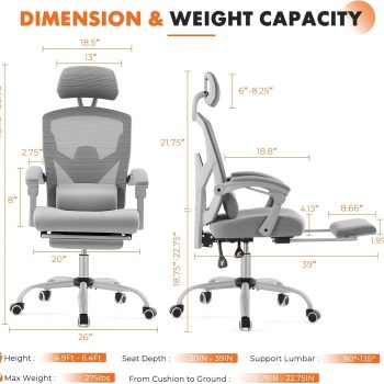 - Adjustable Lumbar Support: This ergonomic office chair is equipped with a lumbar adjustment knob that allows the lumbar cushion to move forward and backward, and it can be moved up and down directly to accommodate users of different heights