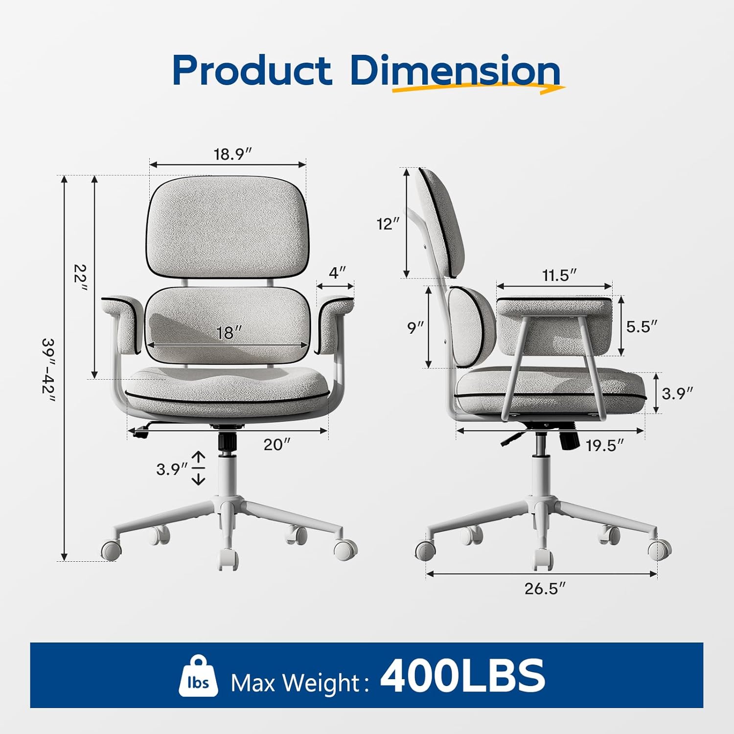 - Sturdy Metal Frame with 400LBS Weight Capacity: Our Comfy desk chair features a robust frame constructed from high-quality materials, engineered to support up to 400 pounds, ensuring lasting durability and reliable stability for your daily work needs