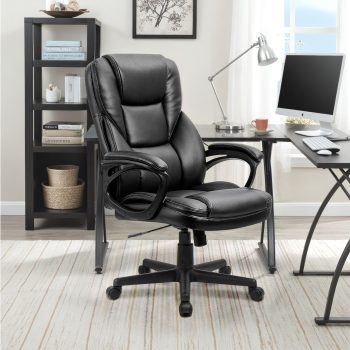• PU Leather Office Chair: This executive desk chair is made of quality waterproof and stain-resistant PU leather material, which is not easy to stain and crack. With high density sponge padding, the upholstered chair leather appearance looks more natural