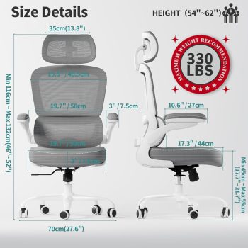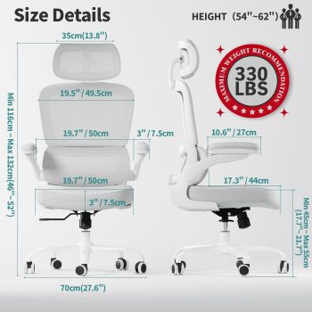- 【High Quality】Featuring breathable mesh material, the ergonomic desk chair can reduce heat and sweating while the high-density cushion is deformation-resistant for longer use. Padded armrests provide for snug elbow support.
